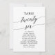 Estes elegantes cartões pretos de 26 lugares são perfeitos para um casamento simples. A design neutra apresenta uma carta minimalista decorada com tipografia romântica e caprichosa. A placa impressão na frente e atrás (lado duplo).
