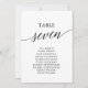 Estes elegantes cartões pretos número 7 são perfeitos para um casamento simples. A design neutra apresenta uma carta minimalista decorada com tipografia romântica e caprichosa. A placa impressão na frente e atrás (lado duplo).