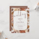 Flores Rústicas de Terracota Moldura de Código QR Casamento. Elegantes flores e frutos e gramíneas em cores de outono terracota marrom e creme, estão por trás de uma moldura de cor creme com cantos arredondados, dentro da qual está o seu texto. O casamento está num conjunto de letras manuscritas divertidas. Personalize facilmente o resto do texto com os seus próprios detalhes. Adicionar o seu código QR ao seu site de casamento no verso torna esta uma opção conveniente para os seus convidados responderem e verem todos os detalhes sem a necessidade de cartões separados de RSVP e detalhes. O seu código QR será gerado automaticamente para atualizar o código de exemplo no design, quando você simplesmente alterar a URL de exemplo no modelo com a URL do seu próprio site de casamento.