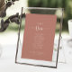 Este gráfico de assentos da mesa de terracota número 1 minimalista é perfeito para um casamento rústico. O design apresenta uma bela fonte de caligrafia para embelezar seu evento. A placa impressão verso (frente e verso)