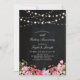 Celebre seu dia especial com este convite personalizado de aniversário de casamento! Este design apresenta belas flores e cordões de luz em um fundo rústico de quadro negro. Você pode personalizar todo o texto e adicionar sua foto no verso. Mais designs disponíveis na minha loja BaraBomDesign.