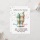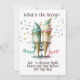 Gênero do sorvete Revele Convite de festas Cuta e o gênero moderno e moderno e moderno revelam um cartão de convite de festas com ilustração aquosa do sorvete em cones de waffle, em rosa e azul, com abertura de geleiras de ouro. O texto diz: "Qual é o furo? Menino ou Menina?" Perfeito para um gênero de gelo revelar festa no verão.