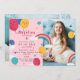 Convites QUALQUER AGE Pink Balloons & Rainbows 2- Foto Aniv
