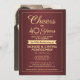 Convide familiares e amigos para uma comemoração elegante de aniversário com burgundy e convites de festas de ouro personalizados. Toda a redação desta modelo (incluindo "Saúde a 40 Anos") é criada para um aniversário de 40 anos de casamento rubi, mas é simples de personalizar para qualquer ano ou tipo de evento. O design apresenta uma simples fronteira moderna sobre um fundo ombre vermelho escuro, caligrafia com script de na moda, e tipografia clássica de arte de vintage. Observe que o ouro é impresso a cor, não a folha metálica. Feliz Aniversário e aplausos ao casal na sua celebração do marco!