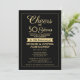 Convide familiares e amigos para uma comemoração elegante de aniversário com convites de festas personalizados de preto e ouro. Toda a redação desta modelo (incluindo "Saúde até 50 Anos") é estabelecida para um 50º aniversário de casamento, mas é simples de personalizar para qualquer ano ou tipo de evento. O design apresenta uma simples fronteira moderna, a caligrafia com na moda e a tipografia clássica com vintage art deco. Observe que o ouro é impresso a cor, não a folha metálica. Feliz Aniversário e aplausos ao casal na sua celebração do marco!