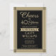 Convide a família e os amigos para uma elegante celebração de aniversário com convites de festas personalizados de preto e ouro. Toda a redação desta modelo (incluindo "Saúde a 40 Anos") é criada para um aniversário de 40 anos, mas é simples de personalizar para qualquer ano ou tipo de evento. O design apresenta uma fronteira distribuída moderna, caligrafia com script de na moda, e tipografia clássica com arte de vintage. Observe que o ouro é impresso a cor, não a folha metálica. A design neutra do ponto de vista do gênero também é adequada para um homem ou para uma mulher. Feliz Aniversário!
