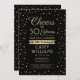 Convide a família e os amigos para uma elegante celebração de aniversário com convites de festas personalizados de preto e ouro. Toda a redação desta modelo (incluindo "Saúde até 50 Anos") é estabelecida para o quinquagésimo aniversário, mas é simples de personalizar para qualquer ano ou tipo de evento. O design apresenta pontos de confete da gliteria moderna, caligrafia com script de na moda, e tipografia clássica com deco de arte de vintage. Observe que o ouro é impresso a cor, não a folha metálica. A design neutra do ponto de vista do gênero também é adequada para um homem ou para uma mulher. Feliz Aniversário!