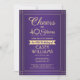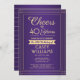 Convide familiares e amigos para uma elegante celebração de aniversário com convites de festas de ouro e roxo personalizados. Toda a redação desta modelo (incluindo "Saúde a 40 Anos") é criada para um aniversário de 40 anos, mas é simples de personalizar para qualquer ano ou tipo de evento. O design apresenta uma fronteira striped moderna sobre um fundo ombre roxo, caligrafia com script de na moda, e tipografia clássica com arte de vintage deco. Observe que o ouro é impresso a cor, não a folha metálica. A design neutra do ponto de vista do gênero também é adequada para um homem ou para uma mulher. Feliz Aniversário!