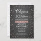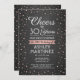 Convide a família e os amigos para uma elegante celebração de aniversário para ela com convites de festas pretos, brancos e rosa personalizados. Toda a redação desta modelo (incluindo "Saúde até 30 Anos") é criada para um aniversário de 30 anos, mas é simples de personalizar para qualquer ano ou tipo de evento. O design apresenta pontos de confete de folha de rosa de ouro falso com brilho moderno em um fundo falso de quadro negro, caligrafia de script de na moda, e tipografia clássica de deco de arte de vintage. Observe que o ouro é impresso a cor, não a folha metálica. Feliz Aniversário!
