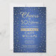 Convide familiares e amigos para uma elegante celebração de aniversário com convites de festas azuis e dourados personalizados. Toda a redação desta modelo (incluindo "Saúde até 50 Anos") é estabelecida para o quinquagésimo aniversário, mas é simples de personalizar para qualquer ano ou tipo de evento. O design apresenta pontos de confete da gliteria moderna em um fundo metálico esfregado, caligrafia com script de na moda, e tipografia clássica com deco de arte de vintage. Observe que o ouro é impresso a cor, não a folha metálica. A design neutra do ponto de vista do gênero também é adequada para um homem ou para uma mulher. Feliz Aniversário!