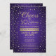 Convide a família e os amigos para uma elegante celebração de marco com este convite de festas de na moda. A design apresenta pontos de confete de folha de ouro modernos e pontos de arte vintage deco inspiraram tipografia em um fundo de aço inoxidável roxo e esfregado. Por favor, note que o texto é impresso a cor, não a folha metálica. Este cartão é configurado para uma festa surpresa de ouro 50º aniversário de casamento, mas todo texto é simples de personalizar para qualquer ano ou ocasião.