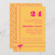 O padrão de pontos amarelos cor-de-rosa e amarelo-manga brilhante com o ano de aniversário em negrito e um pássaro rosa minúsculo acentuando o convite de aniversário. Fácil de personalizar e há um pouco mais que você pode adicionar no lado oposto.