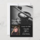Personalize com qualquer ano de graduação! Adicione sua foto personalizada! Negro e branco clássico com design de estetoscópio azul, excelente para a faculdade de medicina, médicos, escola de enfermagem, e cerimônias e festas de formatura de doutorado.