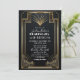 Convite de Aniversário, Casamento, Encontro ou Noivado com Tema Art Déco dos Anos 20, Preto e Dourado, Mistério e Assassinato no Estilo Gatsby
