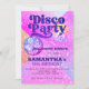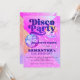 Convite de festas de esfera Disco da Retro 70's com bolas rosa-brilho e roxas sobre um fundo brilhante. ++++++++ Adequado para uma moderna tradição de celebração de aniversário retrô-tema.