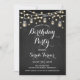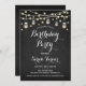 Convite de aniversário. Design de estilo russo com padrão preto de quadro negro. Nenhuma idade listada! Apresenta fontes brancas de script, frascos de pedras e luzes de fadas.