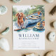 Design de Festa de aniversário de pesca de adultos. Ilustração de aquarela com cores brilhantes. Clique no botão "personalizar mais" se quiser reorganizar e formatar o estilo e a posição do texto. O produto correspondente pode ser encontrado na Pescaria Birthday Collection.