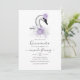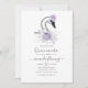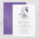 Elegante swan temeu quinceanera convites em sotaque de roxo e prata.