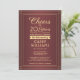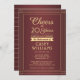 Convide colegas, colegas de trabalho, família e amigos para uma celebração elegante de aposentadoria com convites de festas de burgundy e ouro personalizados. A formulação modelo do "Cheers to 20 Year" é criada para honrar vinte anos de serviço, mas é simples de personalizar para qualquer número. O design apresenta uma fronteira striped moderna sobre um fundo ombre vermelho escuro, caligrafia com script de na moda, e tipografia clássica com arte de vintage deco. A design neutra do ponto de vista do gênero também é adequada para um homem ou para uma mulher. Saúde, Parabéns e boa aposentadoria!