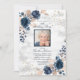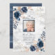 Um belo convite de aniversário moderno de aniversário ou surpresa, com uma foto em um fundo falso de mármore, decorado com rosa de aquarela, em azul marinho e cor-de-rosa pincelada, com bordos de ouro nos cantos. A parte traseira da placa apresenta uma textura de traçado de aquarela em azul-marinho. Copyright Elegant Invites, todos os direitos reservados.