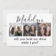 Uma maneira séria de pedir a sua amiga para compartilhar seu dia especial é dar a ela um presente personalizado de colagem de fotos que ela pode guardar como um guardião. Este cartão de convite de apresentação de propostas moderna chique é uma maneira elegante de dizer "você será minha madrinha de casamento/dama de honra?" Todas as fotos e textos são simples de personalizar, incluindo uma mensagem engraçada na frente que diz "você segurará meu vestido enquanto eu mijo?" (DICA IMAGEM: Uma maneira fácil de centralizar uma foto exatamente como você quer é recortá-la antes de carregá-la no site do Zazzle.) A design a preto e branco apresenta quatro fotos de amizade de sua escolha, caligrafia moderna com script de estilo manuscrito e tipografia minimalista da máquina de escrever. Esta modelo de cartas de apresentação é uma maneira única de pop a pergunta ao seu bff e fazer a celebração do casamento começar em estilo. Exemplo de créditos de imagem: a frente esquerda é de Florian Hausleitner no Pixabay e a frente direita é de Sam Manns (@sammanns94 on Unsplash).