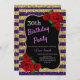 Púrpura elegante, brilho dourado e convite de aniversário rosa vermelha para mulheres de qualquer idade. A idade pode ser alterada para qualquer idade. O texto pode ser alterado para qualquer coisa para ajustado do seu evento. Fontes, cor da fonte e texto são completamente personalizáveis! A forma e o tipo do papel podem ser personalizados para ajustado do seu orçamento e sabor!