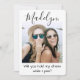 Uma maneira atenciosa de pedir à sua amiga para compartilhar seu dia especial é dar a ela um presente de foto personalizado e elegante que ela possa guardar como lembrança. Este convite de proposta moderno e sofisticado é uma maneira elegante de dizer "você será minha madrinha / dama de honra?". Todas as imagens e textos são fáceis de personalizar, incluindo a mensagem engraçada na frente que diz "você segura meu vestido enquanto faço xixi?". (DICA DE COLOCAÇÃO DE IMAGEM: Uma maneira fácil de centralizar uma foto exatamente como você quer é cortá-la antes de fazer o upload para o site da Zazzle.) O design preto e branco apresenta duas fotos de amizade de sua escolha, caligrafia moderna e tipografia minimalista em estilo manuscrito. Este modelo de cartão de proposta moderno é uma maneira única de fazer a pergunta à sua melhor amiga e começar a celebração do casamento com estilo
