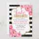 Pêonias cor-de-rosa brilhantes contra um fundo branco e preto listrado definirá o pano de fundo perfeito para o seu Quarenta e Fabuloso convite. Edite facilmente para adicionar suas informações de evento. Excelente para festas surpresa também! Itens correspondentes para esta coleção estão disponíveis no nosso compro!