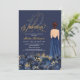 Sério, ooh la la! Ponha o tom para a sua elegante celebração de aniversário com este convite, com uma bela figurina e um vestido de bola, e flores botânicas lusaciosas em tons de marinho profundo e azul-safira com um texto elegante de ouro e branco. Personalize-o para o seu evento. Verifique se há outras formas de cores neste design, incluindo vários tons de pele e cores de cabelo, para torná-lo realmente pessoal! Você pode personalizar todo o texto e alterar a cor do plano de fundo para o que você escolher. Os números podem ser alterados para uma idade de aniversário diferente, basta escolher personalizar ainda mais e encontrar as camadas ocultas!