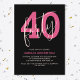Celebre seu estilo aniversário de 40 anos com este convite de aniversário moderno e ousado. Com um fundo preto fora de uso, o grande número 40 está em negrito, cor-de-rosa, com uma tipografia de 40 natas sobre o topo. Por baixo, na tipografia creme e rosa você pode facilmente personalizar com os detalhes da sua festa.