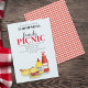 Hambúrguer Whimsical, hotdog, ketchup e mostarda. Um piquenique, churrasco ou um convite de biscoito. Este é um convite excelente para reuniões familiares, festas de aniversário e festas ao ar livre. Com um design bonitinho e divertido com um padrão de toalha vermelha de gingham. Esta divertida e caprichosa design apresenta uma moderna reunião minimalista da família de piquenique, uma divertida apresentação de biscoitos coloridos e churrascos com CHURRASCO de churrasco, uma vintage de cachorro-quente cheeseburger hambúrguer, desenho animado de mostarda de cachorro-quente, caligrafia de trendy script, gingham de comida de chef de chef de salão ao ar, simples ilustração minimalista toalha vermelha de gingham, quintal ao ar livre
