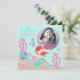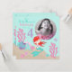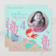 Pequena carta de convite para o quarto aniversário da sereia com criaturas submarinas.