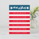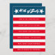Cabeçalho de fonte de imagem em cabeçalho azul em faixas vermelhas e brancas; clique em "personalizá-lo ainda mais" para alterar cores e fontes ou até adicionar ícones de design de fogos de artifício ou elementos de churrasco ao seu convite