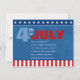 Um convite para seu quarto da celebração de julho que toma sua inspiração da bandeira americana. Uma fileira das estrelas brancas na parte superior com as listras vermelhas e brancas no quadro inferior sua informação personalizada. Adicione toda a mensagem ou sentidos extra a seu evento na parte traseira. Disponível no porte postal e em favores de harmonização.