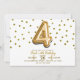 Convites Quatro 4 Dourados Balões e Confetti 4º Festa de An