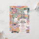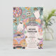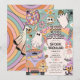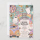 Retrô Quatro Nascentes do Dia das Bruxas 4º Convite de festas de Aniversário - Vamos pegue Groovy! Design apresenta um fundo colorido com um arco-íris. Legal ilustrações retrorreflectoras decoram o simples modelo com adoráveis fantasmas hippie, flores do crânio, bola de disco assustadora e doces espetaculares.