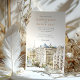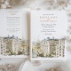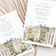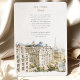 Convide seus hóspedes para um caso parisiense verdadeiramente inesquecível com este convite de casamento requintado, mostrando o icônico Hotel Four Seasons George V em Paris. O trabalho de arte captura lindamente a grandeza da arquitetura parisiense clássica, com sua fachada elegante de creme e pedra bege, balcões de ferro com a assinatura e telhados distintos de cinza azul-escura-mansarda, todos renderizados em um estilo aquoso e romântico. Um vislumbre da majestosa Torre Eiffel em segundo plano adiciona ao charme parisiense quintesessencial. A cena da rua é enfeitada com uma abundância de lindas flores cor-de-rosa e brancas, reminiscentes de flores de cereja ou outras florações em tempo de primavera, brotando de árvores e agarrando as sacadas, acrescentando um toque de delicada beleza floral. Este convite exude sofisticação e romance, perfeito para um casamento de destino de sonho na Cidade do Amor. A frente apresenta elegantemente seus detalhes de casamento, enquanto o lado inverso oferece "Os Detalhes Mais Finos" para informação de convidado, continuando a bela trabalho de arte parisiense. A paleta de cores apresenta cremes macios, beges, elegantes cinzentos e azuis, pinças vibrantes e brancos para as flores e verduras exuberantes.