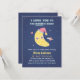 Uma gracinha que te adoro ao convite da lua e chá de fraldas de trás para celebrar a chegada da pequena com mamãe para ser! Ele apresenta uma lua crescente fofa com um boné da noite de dormir enquanto um pequeno foguete voa em direção a ele. Estrelas decoram o plano de fundo azul gradiente. Personalize facilmente com os detalhes do seu partido.