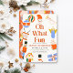 Este belo convite de 1rua/primeiro aniversário "que divertido" apresenta um fundo creme com Papai Noel, um boneco de neve, preguiçoso, anjo, trompete, tambor e ornamentos de férias. O verso apresenta um fundo vermelho com padrões de ornamento. Personalize-o para as suas necessidades. Você pode encontrar produtos correspondentes na minha loja.