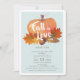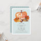 Este "convite de chá de fraldas" bonitinho apresenta uma abóbora laranja com folhas de outono/outono e uma bolota sobre um fundo azul-bebê leve, enquadrada por uma borda branca. O verso apresenta um fundo azul bebê com padrões de bolinhas branca. Personalize-o para as suas necessidades. Você pode encontrar produtos correspondentes na minha loja.