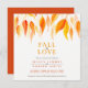 Folhas de outono soltas folhas de aquarela pintura a cores caem em convites para casamento. Arte aquosa simples, laranja, design amarelo e vermelho, ideal para um casamento outono. © Original watercolor art e design por Sarah Trett para www.mylittleedenweddings.com no Zazzle.