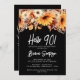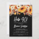 Convite de aniversário Floral de 90 de queda branca e preta para uma festa de aniversário divertida