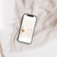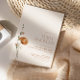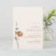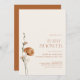 Escrita laranja queimada minimalista e fundo creme e convite elegante para chá de fraldas de tipografia.