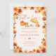 Elegante caligrafia floral e laranja queimada outono convite para chá de fraldas temático "Cair no Amor" com abóbora de aquarela fofa, botas de chuva, pacificante e elementos de design neutro de gênero guarda-chuva.