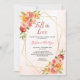 Estes convites de chá de panela "Fall In Love" apresentam um design floral de cor d'água com coral, pêssego e flores cor-de-rosa pinceladas e um falso quadro geométrico dourado. O fundo é a aquarela florada. Personalize o texto do convite com o seu próprio texto. Estes convites fazem parte de uma coleção que inclui uma série de artigos de papelaria de casamento e outros artigos de casamento. Visualize a página de coleta ou visite nossa loja para ver o intervalo de cheios.