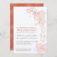 Convite de casamento de arte de outono desenhado à mão. Um canto de bagas de folhas de maple e folhas caídas design em laranja queimado com texto preto na frente e laranja e padrão de folhas no reverso. Outras cores e itens correspondentes disponíveis. © Desenho original em folha e design por Sarah Trett para www.mylittleedenweddings.com em zazzle.