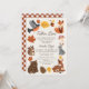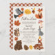 Este convite para chás de fraldas bonitinho, neutro em termos de gênero, inclui animais de floresta, como esquilo, raposa, urso, veado, pisco e coelho, juntamente com folhas de outono, cogumelos, pinecones, e de acordo com o texto "Cair no Amor". O verso apresenta um padrão de xadrez laranja no outono. Personalize para suas necessidades. Você pode encontrar mais produtos correspondentes na minha loja.