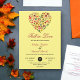 Este elegante convite de casamento outono é perfeito para um casamento moderno no outono. A simples design apresenta um coração colorido de folhas de outono com elegante tipografia negra e vermelha sobre fundo amarelo-claro
