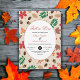 Este elegante convite de casamento outono é perfeito para um casamento moderno no outono. O simples design apresenta um padrão de folhas de queda com elegante tipografia negra e burgundy sobre fundo branco.