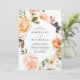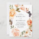 Convites florais de outono elegantes que exibem seus detalhes de casamento emoldurados por flores brancas, cor-de-rosa-rosa-pincel, laranja e branca, com folhas castanhas e verdes. Os convites de casamento florais do outono invertem-se para apresentar um fundo verde sólido.